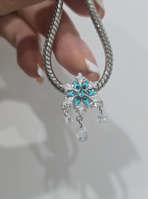 JVC002Capture the magic of winter's thaw with this exquisite Gnoce charm. Expertly crafted from 925 sterling silver with blue enamel, this dreamcatcher-inspired bead features delicate blue enamel snowflakes and three shimmering teardrop stones. It embodies the beautiful moment when winter snow melts into spring, symbolizing eternal freedom and carrying a glimmer of hope. A versatile piece that adds poetic charm to any jewelry collection.