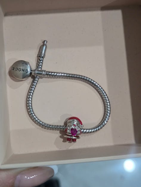 JSC177Capture the heartwarming magic of Christmas with this exquisite Gnoce charm! Meticulously handmade from 925 Sterling Silver, it features a joyful Santa Claus lovingly holding a vibrant rose-red stone heart. This enchanting design symbolizes the warmth, love, and generosity of the holiday season. Perfect as a Christmas gift, it adds a festive and heartfelt touch to any bracelet or necklace.