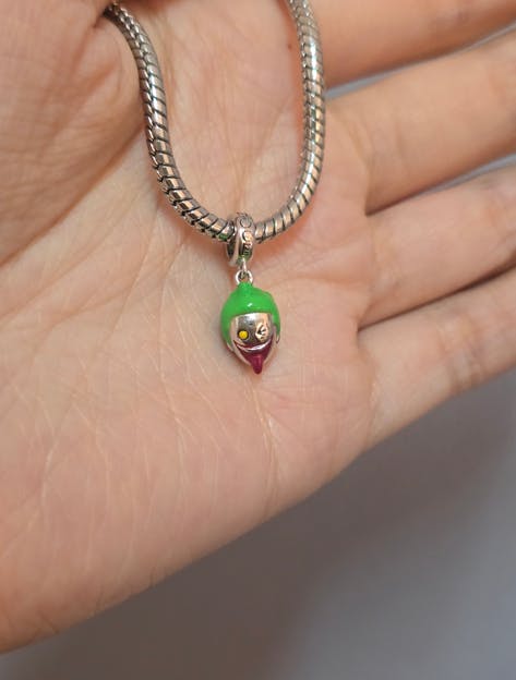 JLC108Channel the chaotic energy of Gotham City’s Clown Prince of Crime with this exquisite the Joker Pendant Dangle Charm. Meticulously handcrafted from premium 925 Sterling Silver, it captures the Joker's manically grinning visage. Vibrant enamels meticulously replicated his iconic green hair and sinister, smirking lips, mirroring his unforgettable and anarchic appearance.